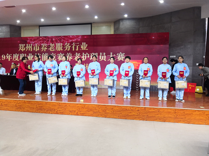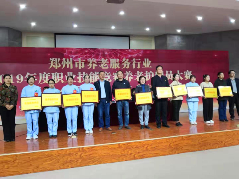 2019年10月27日,鄭州市職業技能大賽養老護理員大賽在鄭州鐵路職業技術學院落下帷幕,此次大賽由鄭州市民政局主辦,鄭州市養老協會協辦,鄭州鐵路職業技術學院承辦,共有34個單位和186名護理員報名參賽,是歷年來參賽選手最多,競賽水平最高的一次,康乃馨居家養老服務人員通過初賽,有胡衛衛、岳艷敏、侯夢丹3人進入決賽,經過激烈角逐,3人均獲養老服務崗位能手稱號,同時,康乃馨居家養老公司榮獲優秀組織單位榮譽。